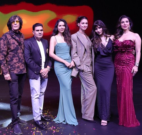 L to R: Chunky Panday, Ajay Chaudhary (Founder, Chairman & Managing Director of ACE GROUP),Sonam Bajwa, Disha Patani, Mouni Roy, Sophie Choudry