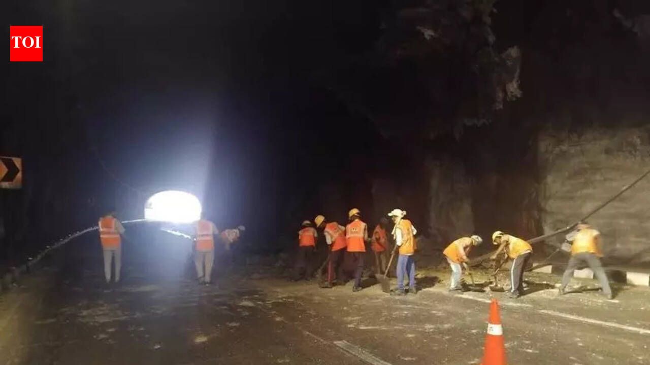 Navi Mumbai: Chunks of cement-concrete fell off Adoshi tunnel’s roof and sides on buses and cars on the Mumbai-bound carriageway of Mumbai-Pune expressway on Tuesday. No one was injured but a few vehicles were damaged. Traffic on the carriage was disrupted for over an hour and the congestion stretched for a few kilometres.Workers of the contractual firm, besides a team from highway safety patrol’s Borghat unit, were pressed into service to fix the issue. Traffic resumed after the debris was cleared and the lanes were opened in a phased manner. The incident raised safety concerns among motorists. Many demanded an inspection of tunnel works to assess its structural stability. —Umesh K Parida
