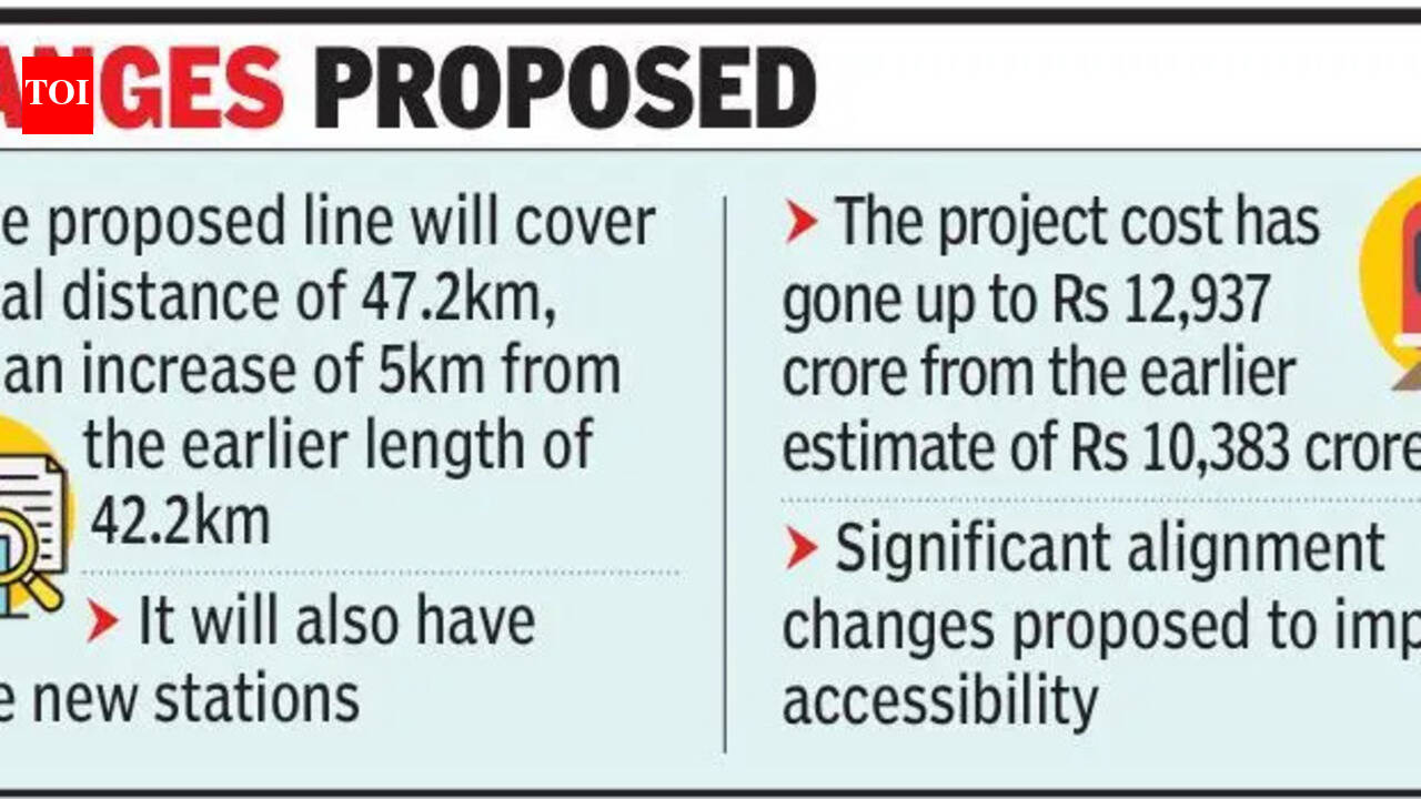 Pune: Maha Metro has submitted a revised Detailed Project Report (DPR) for the elevated Metro line from Bhakti Shakti Chowk to Chakan to the Pimpri Chinchwad Municipal Corporation (PCMC) for further consideration. The proposed line will cover a total distance of 47.2km, an increase of 5km from the earlier planned length of 42.2km. In addition, three new stations have been included, bringing the total number of stations to 34 from the earlier 31.The inclusion of additional stations has increased the project cost to Rs 12,937 crore, up from the earlier estimate of Rs 10,383 crore.Significant alignment changes have been proposed in the Bhosari MIDC, Landewadi and Bhosarigaon areas to improve accessibility for more commuters.The project also includes an integrated double-decker flyover from Bhosari to Chakan, spanning 17km, which will be constructed in association with the National Highways Authority of India (NHAI). As part of the revised plan, the DPR recommends the demolition of the existing flyover at Bhosari and its reconstruction, Maha Metro officials stated.PCMC is expected to discuss the DPR and provide its suggestions. Following PCMC’s approval, the proposal will be forwarded to state govt for final clearance.“We have also proposed provisions at the Bhakti Shakti and Chakan terminals for future Metro expansions. A potential line may be developed from Bhakti Shakti Chowk towards Talawade MIDC–Kharabwadi–Chakan. In addition, the corridor could be connected to the proposed Wakad–Katraj line at Bhujbal Chowk through track connectivity,” a Maha Metro official said.“Work on a Metro line from PCMC to Bhakti Shakti Chowk, covering areas such as Chinchwad, Akurdi and Nigdi, is already underway,” he added.