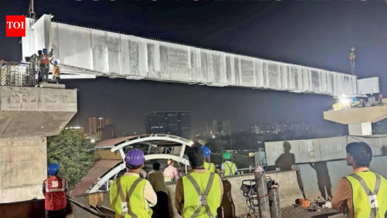 MUMBAI: A major engineering feat was achieved on the under-construction Lokhandwala-Vikhroli Metro Line 6 over days leading up to Sunday. In one of its most challenging stretches between Ram Mandir and Jogeshwari stations, engineers and workers first constructed a critical pier along Western Railway tracks within an active train zone over days, followed by the launch of a 42-metre steel composite span over tracks.The launch was carried out by MMRDA, in coordination with Western Railway, in the early hours of Sunday. The 14.5km Pink Line is fully elevated, featuring 13 stations and a 15.2hectare depot at Kanjurmarg.