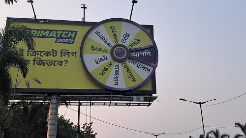 One of the billboards features dramatic 3D elements: extended gloves, a cricket helmet, and even a phone caught mid-air. These elements create a powerful illusion of a cricketer bursting out of the board-full of motion, energy, and excitement.