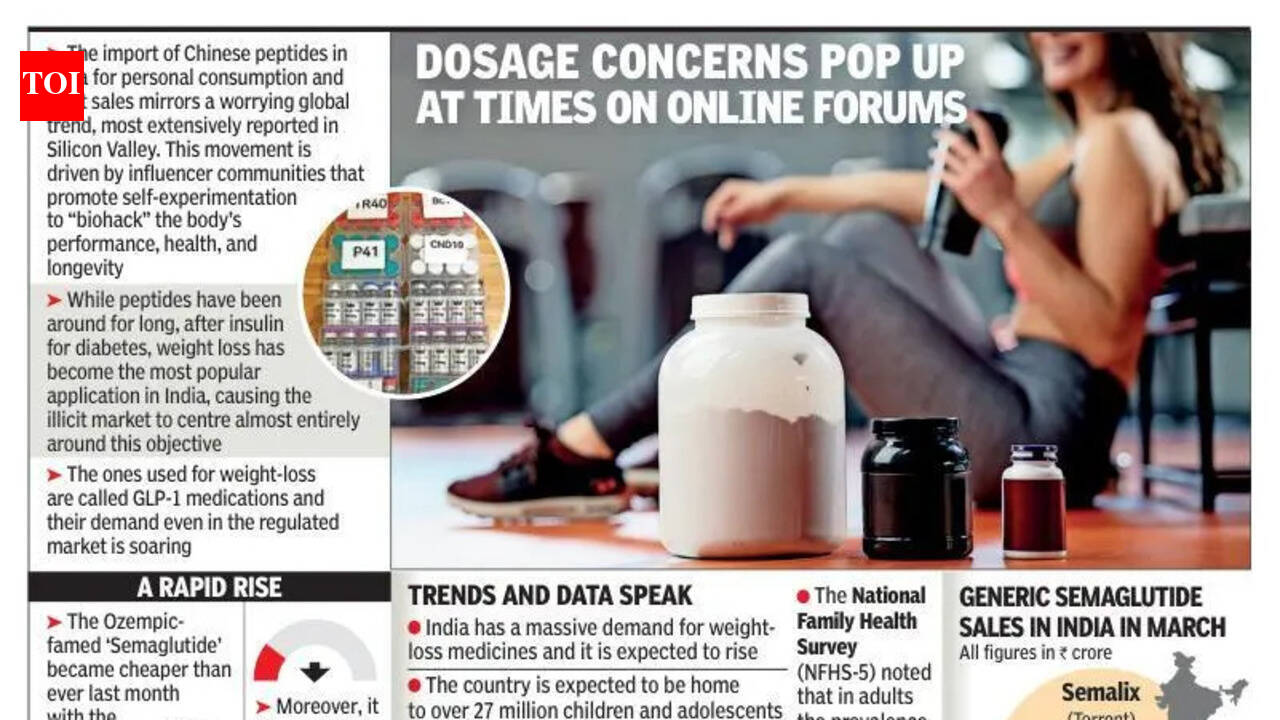 Mumbai: It starts with a single Instagram reel. A fitness influencer hammering out the pros and cons of the market’s most potent weight-loss peptides. Two taps and the algorithm soon takes over. A flood of peptide-fueled weight-loss journey posts cover the feed. Long YouTube explainers are then hunted down—this is the beginning of a rabbit hole dug deep for months. The path is paved with AI-simplified scientific papers, obsessive Reddit threads, and private chat groups. All of it is a crescendo building toward one final act: a shipment from China of powdered weight-loss medication, unapproved and still under trial.Hundreds across India rely on these imports, partly to beat the prices of doctor-prescribed medications like Mounjaro, which can cost Rs 16,000 for a month. Semaglutide (known by the brand name Ozempic) has become cheaper than ever before, but even that is unlikely to dent the market for “Chinese peptides”.The main attraction here is a desperate hunt for alternatives that delay the weight-loss plateau. Even the most potent GLP-1s can only reduce the weight to a certain point as the gut eventually adapts to the medication. When one discontinues, the weight slowly bounces backA Reddit group named ‘r/Retatrutide’ pulls 1,56,000 weekly visitors from across the world. This is an experimental injectable medication that mimics three different hormones (GLP-1, GIP, and glucagon). In clinical trials, it has shown greater promise for weight loss than its predecessors.“Anyone from India? I am very new to peptides and wanna talk with an Indian guy running Reta…,” posted one user months ago on r/Retatrutide.Recently, another user, Tarun (name changed), commented on the post: “I’m trying to find legit sources for Reta here but I’m not able to.” He soon announced to the group that he had found one.There are many like him who are trying to get their hands on Reta. At KEM Hospital, Dr Tushar Bandgar recalled a moment that left his team befuddled. A patient sent an internet-downloaded picture of a box labelled Retatrutide and asked if it could be consumed.“We told him it is unapproved for use,” said Dr Bandgar.The Mumbai boysTarun is a 20-year-old Grant Road resident who has struggled with obesity since his teens. “By 15, I just wanted to lose weight. I started learning about calories, micronutrients, and protein,” he told TOI. A gym membership at 17 helped him get his weight down 10 to 15 kgs, to around 80 kgs in a year, but then no more.Last year, the world of peptides flooded his screen during a random bout of doom-scrolling. He found himself looking up Tesamorelin (used to reduce excess abdominal fat, mostly in HIV patients), Ipamorelin (for muscle growth), MOT-C (for metabolic efficiency), and TB-500 (for muscle repair).Finally, he settled on Reta: “I am a huge fan,” he said. This Monday, he began a 1mg weekly dose of it, paying Rs 11,000 for 50mg after a “student discount”.What Tarun was browsing, Javed (name changed), a 41-year-old Kharghar-based photographer, was already injecting. Along with Retatrutide for weight-loss, Javed uses Tesamorelin and Ipamorelin. The Ozempic buzz opened the door to GLP-1 for him, and then more niche peptides. 10 vials of Retatrutide (10mg each) costs him Rs 10,000; it yields 5 mg injections weekly.Tarun’s Bengaluru-based seller, Ranjan (22, name changed), who boasts a client base of 200, himself struggled with obesity for years. His first import attempt of Retatrutide was a scam. “I injected 20 mg over 45 days, but nothing happened,” he said.Through Reddit, reliable vendors were found in no time. As a seller, he makes the terms clear: “I tell them that the dosage is their lookout and the supplies are mine.”His website carries the disclaimer: “Products sold are strictly for in-vitro research and analytical applications. They are not intended for human consumption or medical use…”Such unsupervised and surreptitious use of these chemicals is ringing alarm bells among experts. Endocrinologist Dr Nikhil Bhagwat is at a loss for words knowing that people are injecting three peptides at once. “I’m not sure if the combination of Retatrutide and Tesamorelin has ever been studied,” he said.The long-term risks for Retatrutide, he said, is still not known simply because it is under-trial. “GLP1s are life-saving but our understanding is still developing. Some on Semaglutide or Tirzepatide have only now begun reporting depression or gastroparesis.”Playin’ in the loopholesA user-turned-seller, Gurgaon-based Ankit (31, name changed), said his weekly imports always exceed $500. He gives customers two options: club their order with his to bypass the $50 shipping charge, or buy directly from his stock as needed. Payments to Chinese vendors are in cryptocurrency.Through online groups, Ankit says he’s part of a circle of at least 100 Retatrutide users in India. He struggled with obesity for years. Began importing peptides for himself last year, only to realise this could not be sustained without a business cycle: 40% profit on sales allows him to reinvest those funds into more purchases for himself and others.The scale of the operation is not insignificant: 50 to 60 import orders of a line of peptides for consumption and sales–5,000 vials labelled “research use” worth over Rs 20 lakh in a year–all under the nose of customs through cargo.Ankit explained the import process: small boxes arrive with compound names abbreviated. Vendors send these to freight forwarders who combine them with larger shipments of unrelated products. Commercial invoices are attached, and the goods are handed over to courier services.“In the declaration, only a few products, their quantity, and value are mentioned. When it reaches India, bare-minimum screening is done by Customs before release,” Ankit said. One of his orders was opened for the first time just weeks ago and still made it through.A Customs official explained 