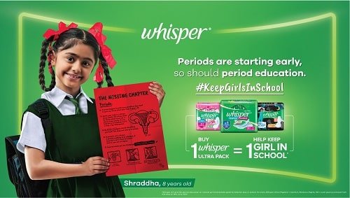“There is a seismic shift happening in period biology. This heightens the need to educate girls early on and to prepare them to embrace this biological process. Through this initiative, we strive to educate them about how periods are healthy and how they can take care of themselves on their period days. Every year, Whisper goes to more than 60,000 schools to create period education programs and we are now also going to younger standards. Consumers too can do their bit buying a Whisper Ultra pack which will help us educate and donate pads to one girl to keep her in school,” said Girish Kalyanaraman, Vice President & Category Leader – India Feminine Care at Procter & Gamble.