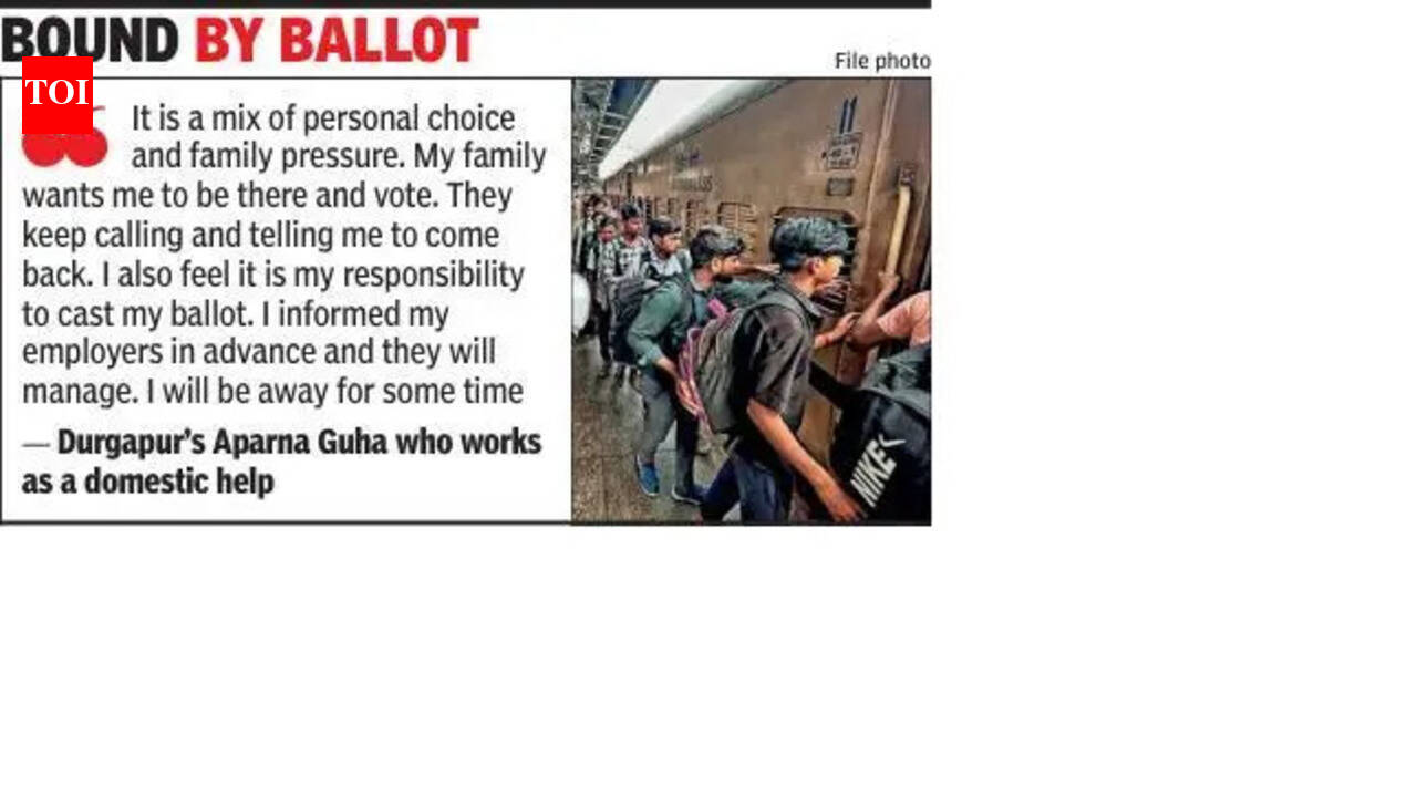 Pune: The informal workforce in the city is thinning out as migrant workers from West Bengal head home to celebrate Poila Boishak on April 14 and vote in the state’s upcoming elections later in the month.The typically short festive visit for the Bengali New Year has turned into a longer, more purposeful journey, as civic duty takes precedence alongside tradition.The impact is visible across households and restaurants. Domestic helps, cooks, waiters and kitchen staff are taking extended leave, planning to return only after voting. It means staying back in West Bengal through at least one phase of polling and stretching their absence in Pune to several weeks.A waiter at a restaurant in Koregaon Park, Gopal Dutta, said, “I have to go and vote, because my parents are forcing me to come. Rumours and WhatsApp forwards have left them worried. Thankfully, getting leave from my employer is not that tough because I am a long-time employee. They have to let us go to cast our vote.”Restaurant owners and resident associations said the shift is being felt already. Ganesh Shetty, president of the Pune Restaurants and Hoteliers Association, estimated that a noticeable portion of the workforce has temporarily exited the city. “There are a lot of rumours regarding SIR that people don’t understand and panic. About 10%-15% of our staff has gone back to vote. Some of them have not even taken their pay, since they know it will be given on their return,” he said.However, for workers, the decision is less about inconvenience and more about obligation — familial and civic. Biswajit Mandal of Midnapur works as cook in Pune for the last six years. He said he had planned his leave weeks in advance. “Poila Boishak is important, but voting is equally so. I will go home on April 12, spend time with my family and stay back till my voting day. Work will be there when I return, but voting cannot be missed,” he said.Durgapur’s Aparna Guha, who works as a domestic help, said it was a mix of personal choice and family pressure. “My family wants me to be there and vote. They keep calling and telling me to come back. I also feel it is my responsibility to vote. I informed my employers in advance and they will manage. I will be away for some time,” she said.The migration has also altered community plans within Pune. Arun Chakraborty, who runs the Facebook page Bengalis in Pune, said that Poila Boishak celebrations will be subdued this year. “We have not planned anything, because many members, especially the senior ones, are going to West Bengal to vote. We will collaborate with other Bengali associations to have some programmes for those who are in the city. People are more enthusiastic to go and vote this time. They completed the SIR formalities earlier and are now going to vote. Many who didn’t manage to get train tickets have paid extra to go by flight,” he said.In Pune, the temporary absence means rearranged schedules, limited menus and households stepping in to fill the gaps. As one restaurant manager put it, this is a disruption most are willing to accommodate. Even the busiest kitchens can pause when democracy calls.